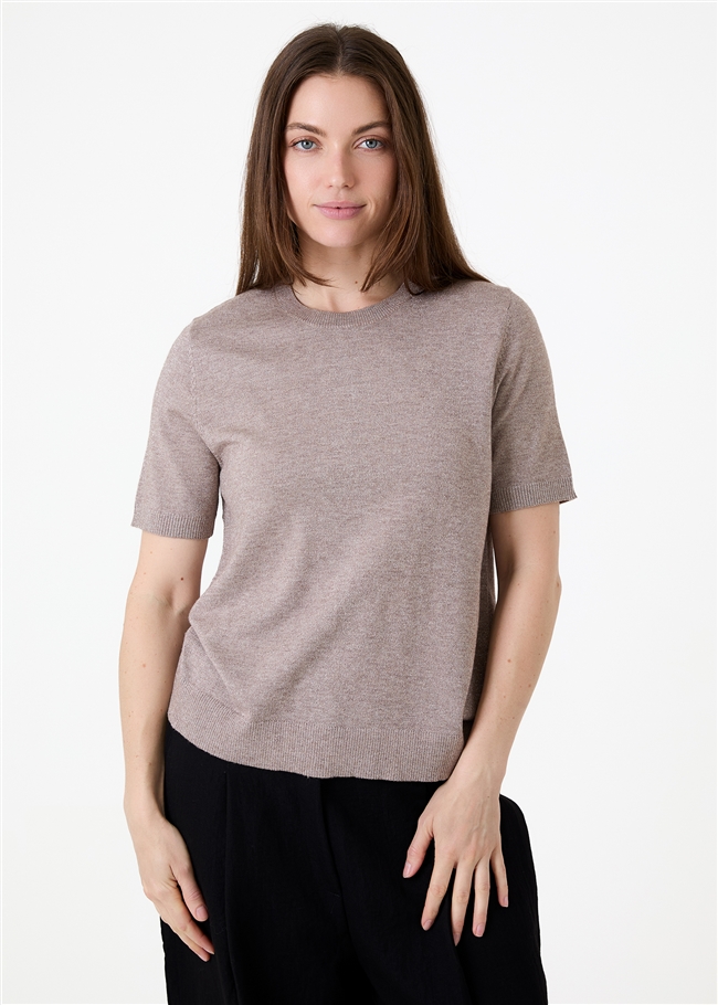 Cashmere Like Lurex Short Sleeve Crew Neck Jumper