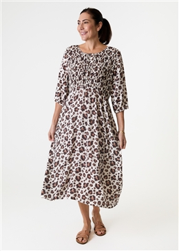 Be bold in our Leopard Smudge Shirred Tie Front Midi Dress. This dress flatters your silhouette while adding a touch of playful elegance. The bold leopard smudge print ensures a standout look, while the midi length and lightweight fabric offer comfort and effortless movement. Perfect for casual outings, office events, or evening occasions, this versatile dress pairs beautifully with sandals, heels, or boots. A summer wardrobe essential for confident styling.