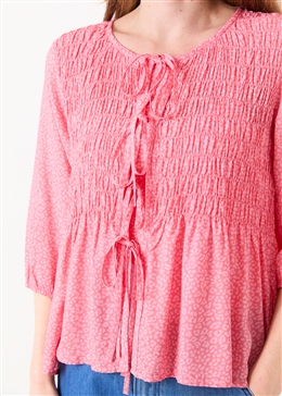 Bring a touch of playful sophistication to your wardrobe with the Mini Leopard Print Shirred Body Tie Front Blouse. The tie-front design adds detail, while the shirring adds texture and shape. It's mini leopard print injects personality into casual and smart-casual looks alike. Pair it with tailored trousers for the office, a denim skirt for weekend outings, or layer under a blazer for evening events. Lightweight and stylish, it’s a versatile piece that stands out without trying too hard.