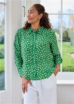 Add a touch of fun to your casual wardrobe with the Smudge Spot Button Through Collar Shirt. The playful smudge spot print gives this classic shirt a modern, artistic twist, while the button-through front and relaxed fit ensure all day comfort. This shirt transitions effortlessly from office wear to weekend outings. Pair it with trousers for a chic look or tuck it into a skirt for a more polished style. A versatile, stylish piece for your spring outfit rotation.