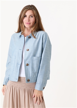 The perfect spring layer, this ladies jacket combines style and practicality in one versatile piece. Crafted from a soft cotton blend, it’s lightweight yet structured, making it ideal for layering over everyday outfits. Featuring classic patch pockets, a relaxed fit, and clean lines, this jacket is as functional as it is stylish. Dress it up over a blouse or keep it casual with jeans for effortless seasonal style